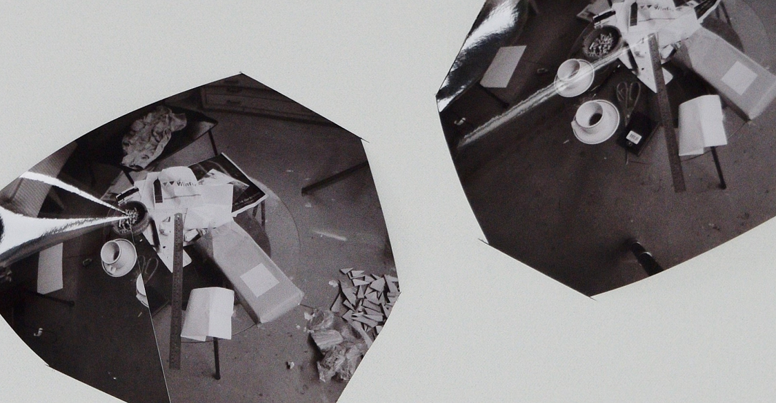 Klaas often uses large cicles or tiny dots in his work. Sometimes he cuts out circles and fills them up again with a different color. Here he folded photographs into a round shape.