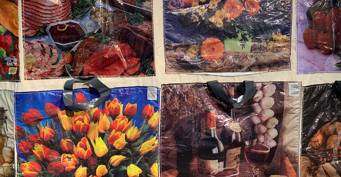 De tassen in dit werk van Daniel hebben geen groot logo van de winkel of supermarkt, maar zijn bedrukt met foto’s van bloemen, drank of voedsel. In Polen zijn deze tassen mateloos populair en worden ze Reklamówki genoemd, ofwel kleine advertenties. Trekken deze afbeeldingen je aan? Hoe komt dat?