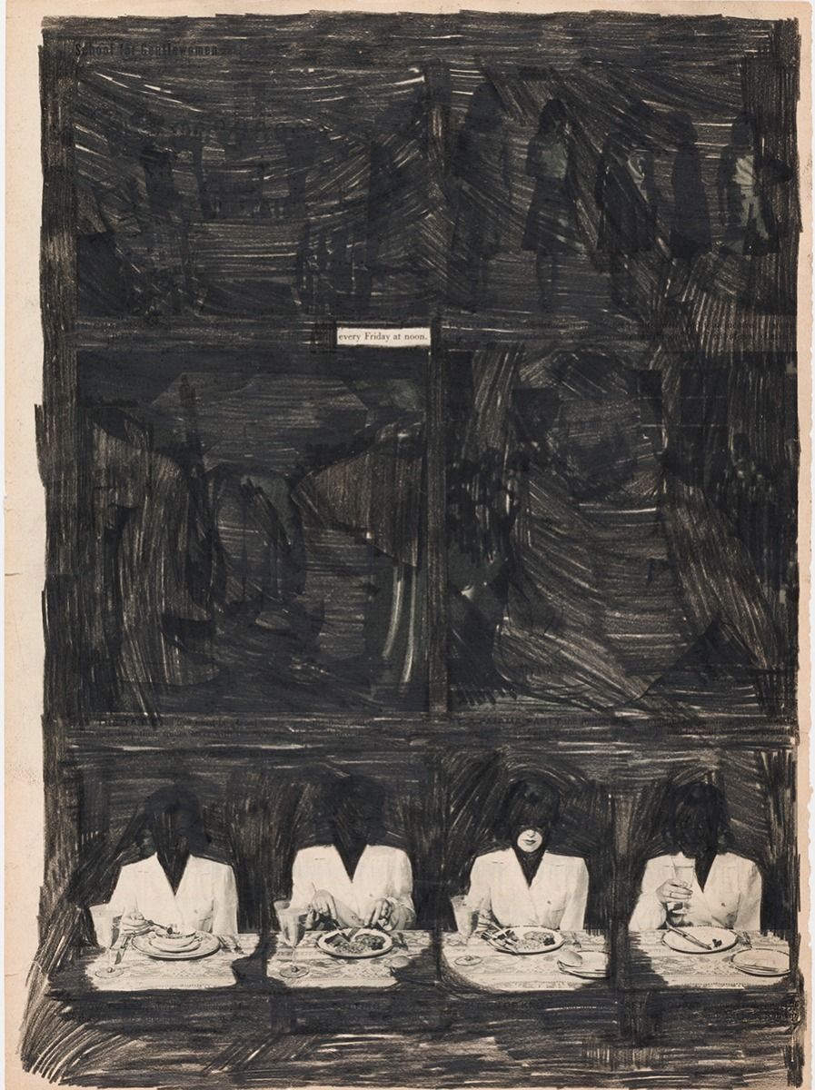 The drawings and collages of Guy have a relatively small size, which makes viewing them an intimate experience.