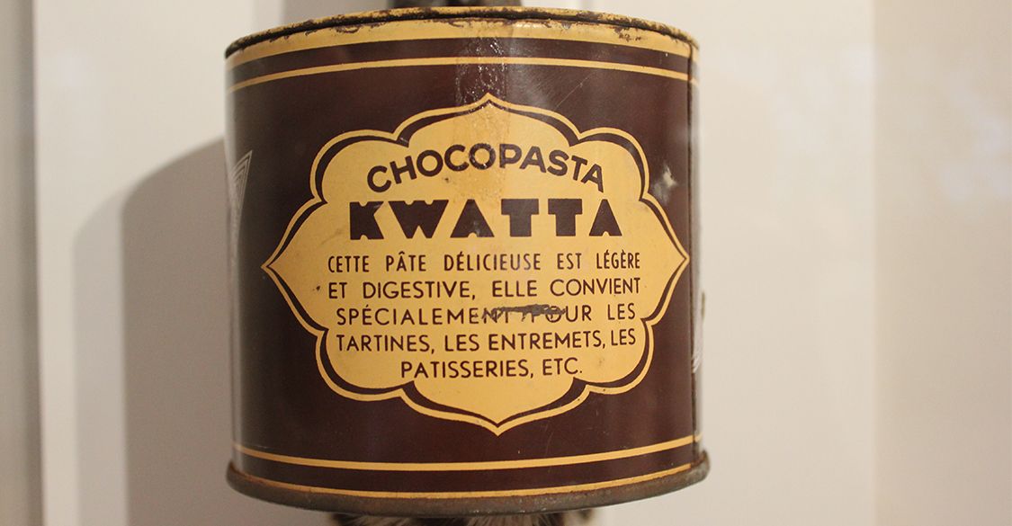 That jar that you see, contained chocolate paste. You probably know Nutella, but do you know the Kwatta brand? The company was founded in 1877 by two Dutchmen, one was a baker and the other owned a cocoa plantation in Suriname. The cocoa that was used came from the cocoa plantation near Paramaribo. The plantation was called Kwatta.