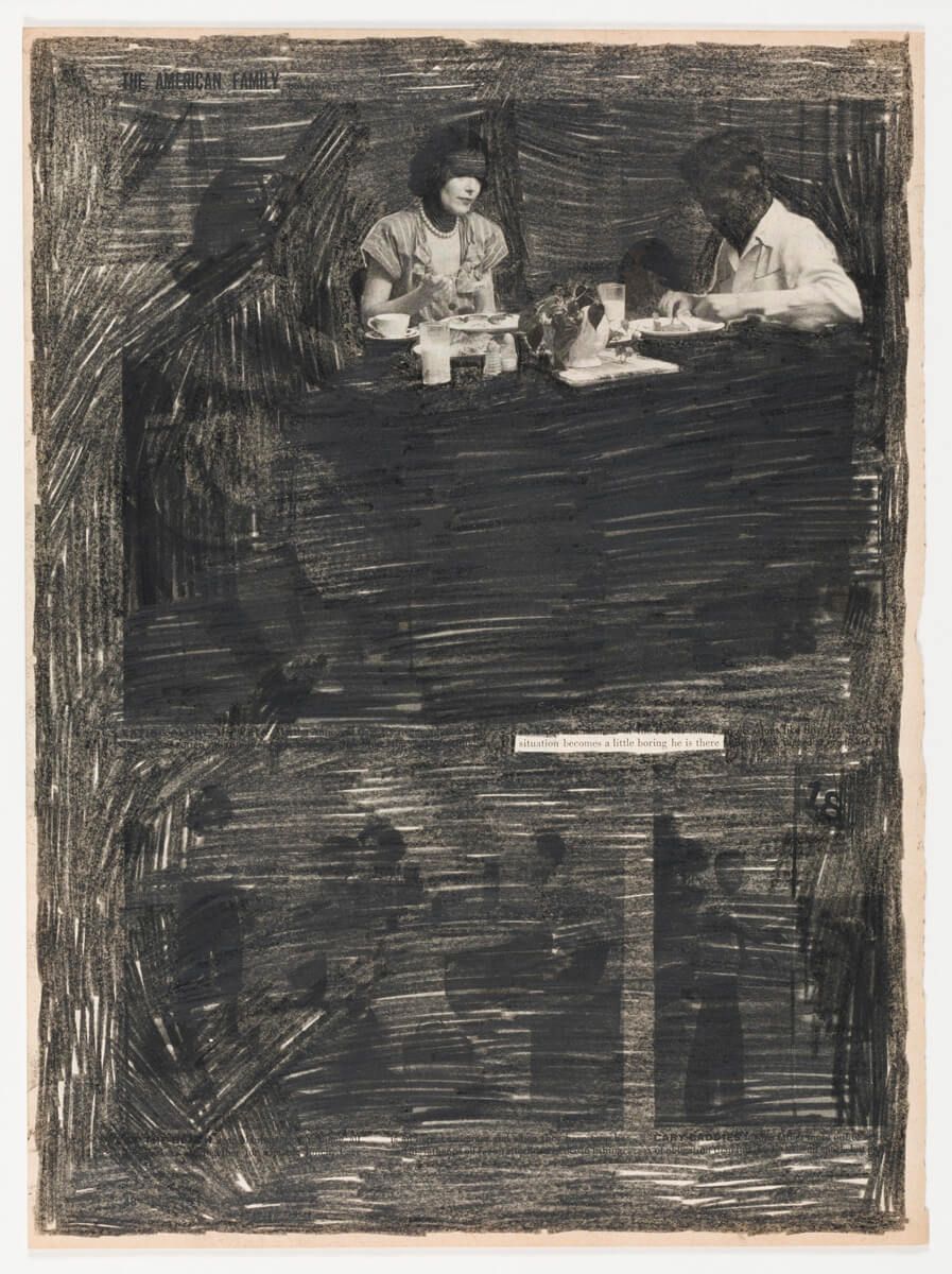 The drawings and collages of Guy have a relatively small size, which makes viewing them an intimate experience.