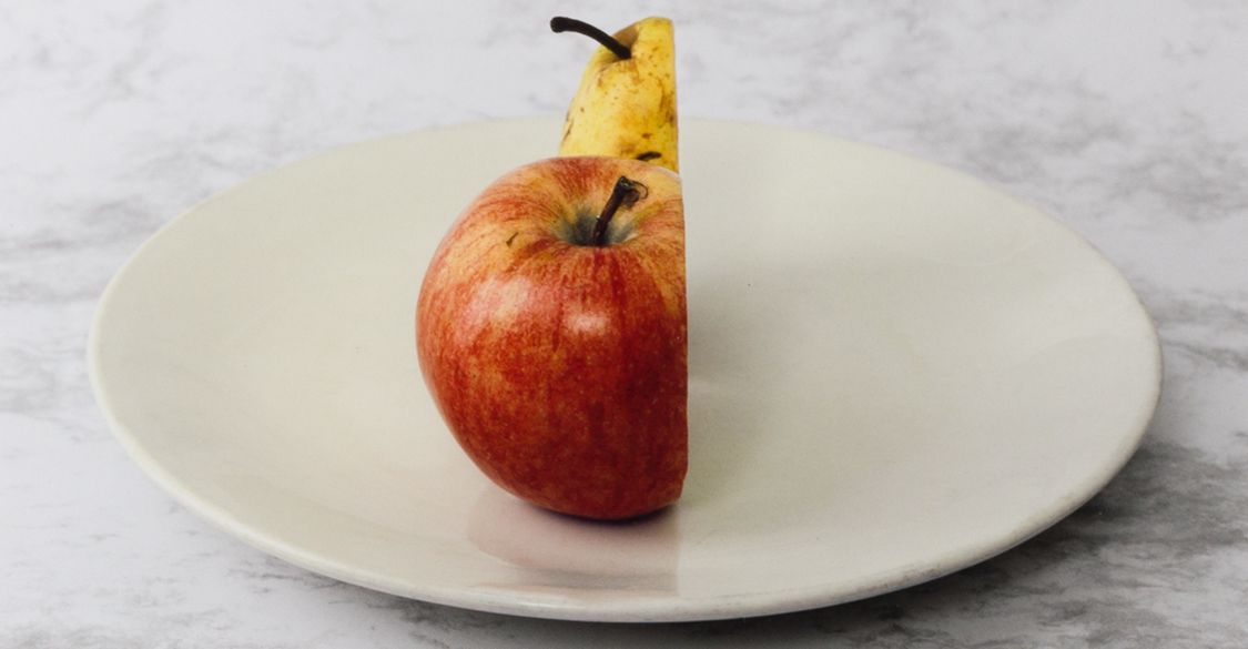 You can see familiar fruits on almost all the plates: apples and bananas. You probably eat them often enough. But there’s a type of fruit on the bottom left plate you may not immediately recognise. Do you know what it is?